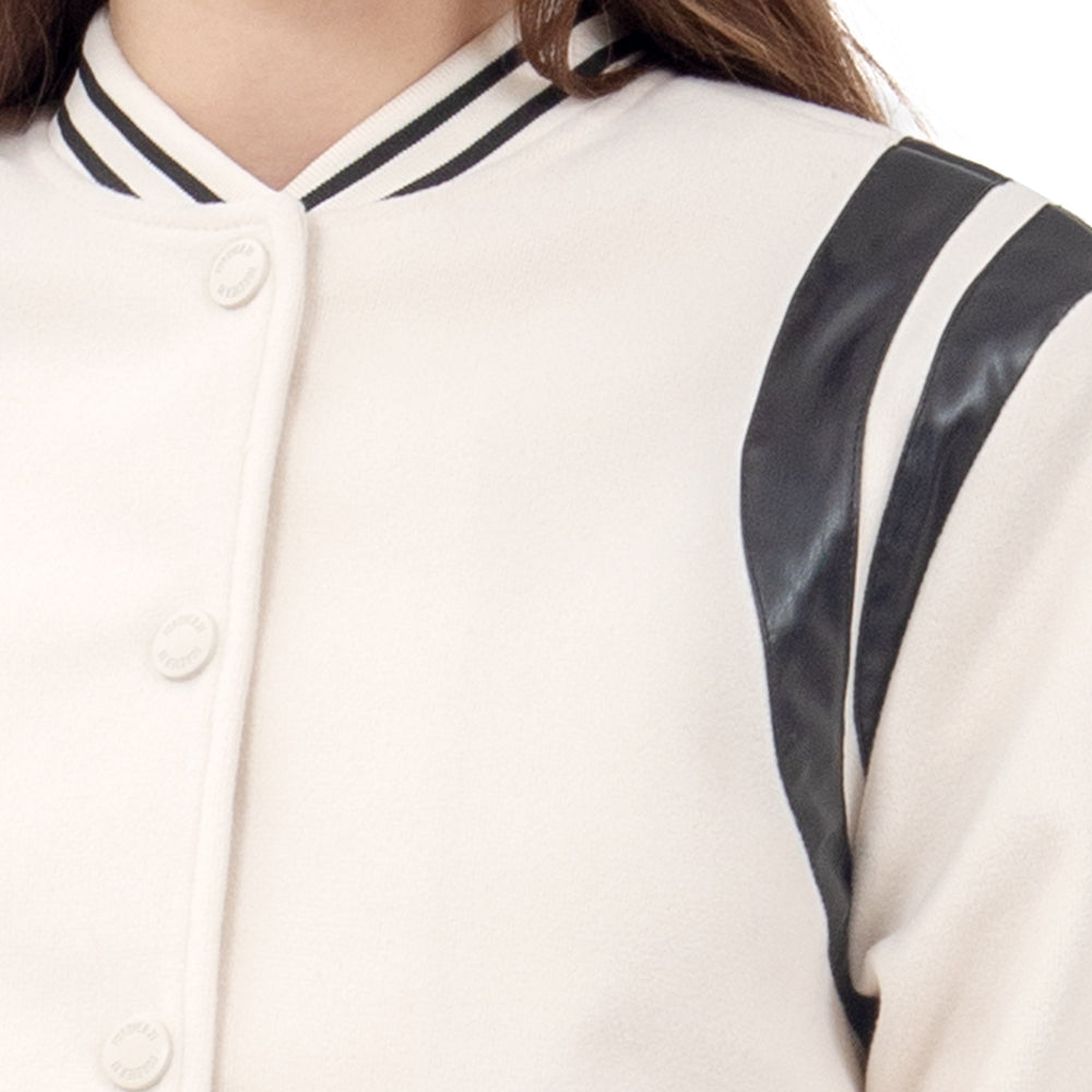 ✨ La chamarra que eleva cualquier look sporty. Esta bomber varsity combina un fit cómodo con paneles contrastados tipo leather que le dan un vibe moderno, perfecto para llevar tu street style al next level sin perder la comodidad del día a día.