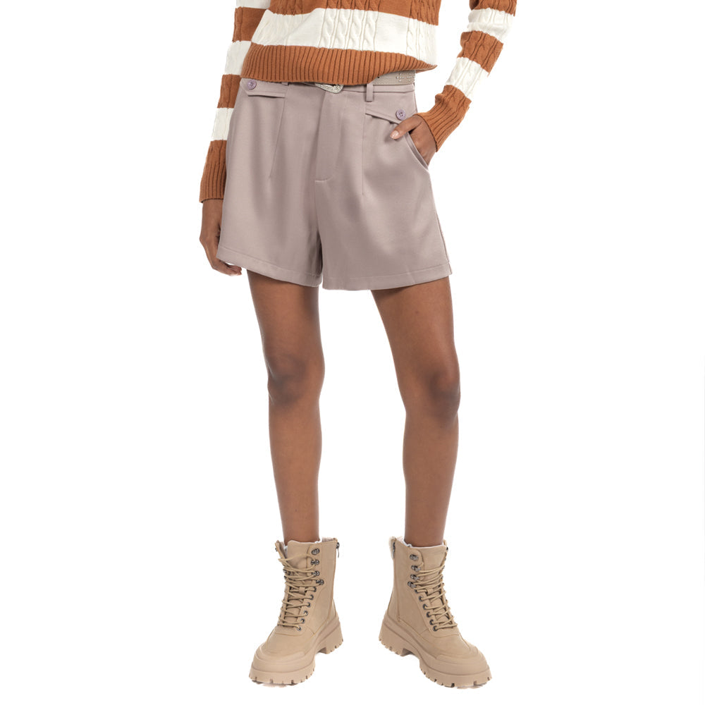Meet your new go-to: un short wide fit con vibra tailoring que eleva cualquier look. Silueta amplia con pinzas, caída suavecita y cinturón con hebilla metalizada para ese toque LA vibes. Funciona de día con sneakers y de noche con botas chunky—effortless y on trend.