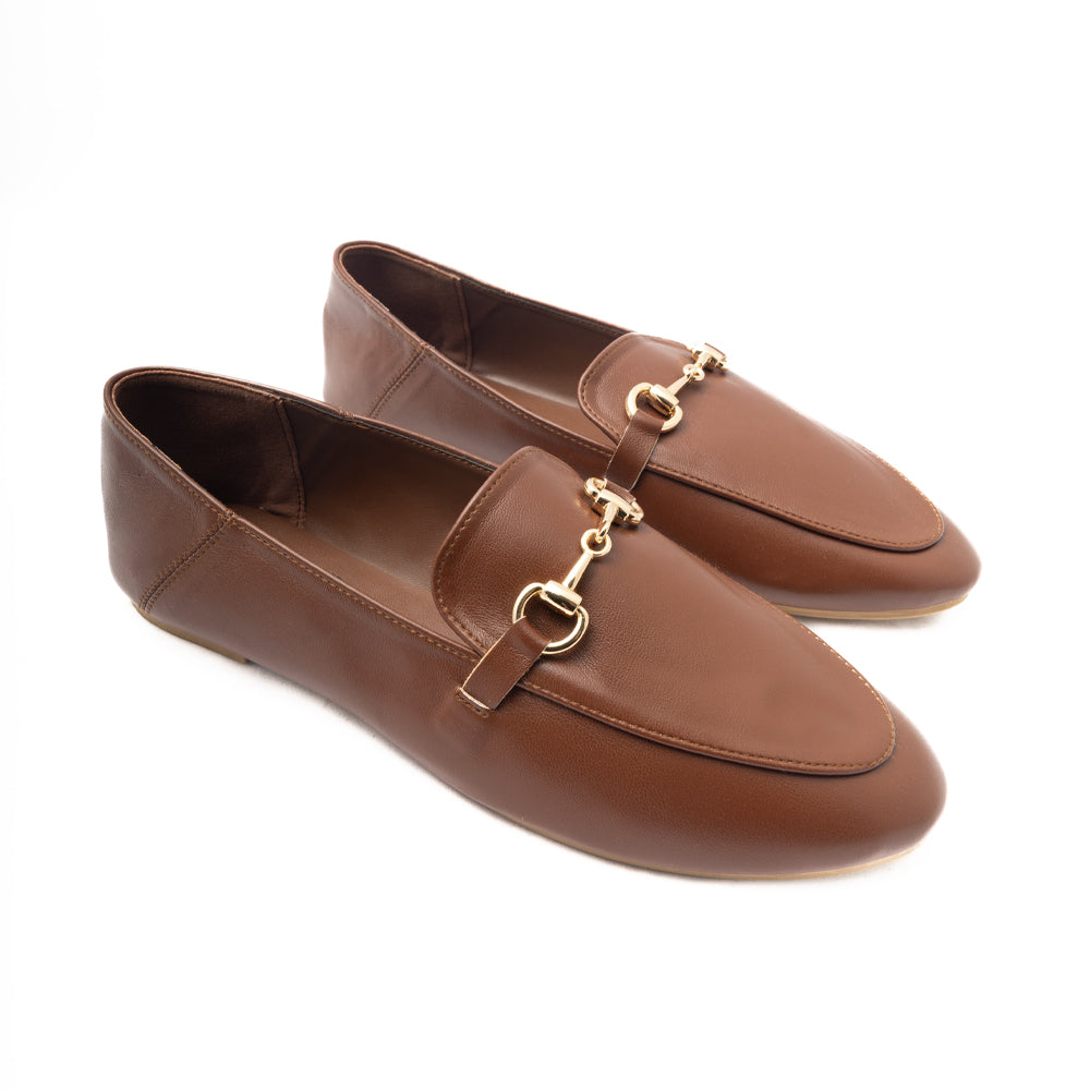 El mocasín que eleva cualquier look. Diseño clásico en tono café con herraje dorado estilo horsebit, silueta estilizada y acabado soft-touch. From desk to dinner, es la pieza ideal para un outfit chic sin esfuerzo.