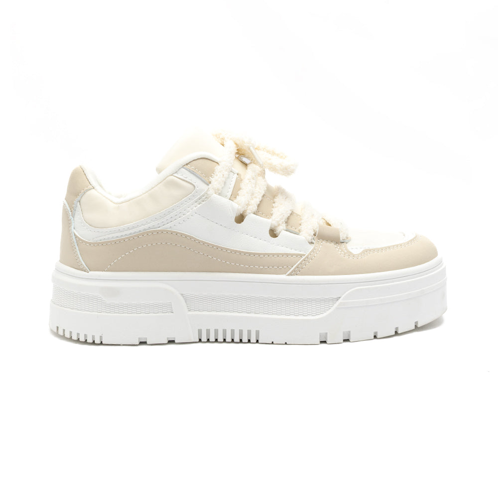 • Beneficios clave: plataforma que estiliza sin peso extra, ajuste estable con agujetas gorditas de inspiración cozy, diseño versátil bicolor que combina con todo, tracción confiable en cada pisada.