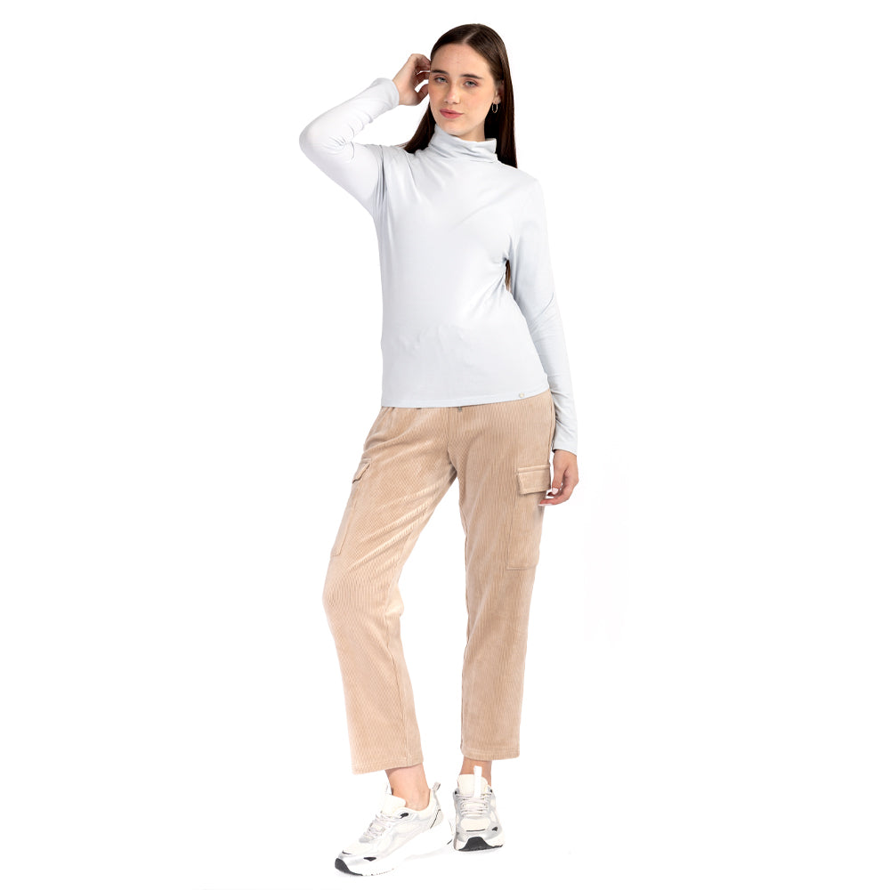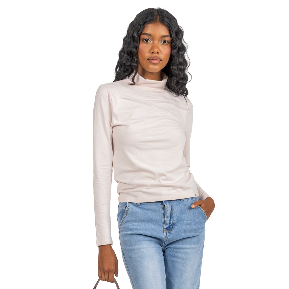 Eleva tus capas con estilo: playera slim fit de cuello alto que abriga ligero y define la silueta. Suave, elástica y perfecta para el diario.