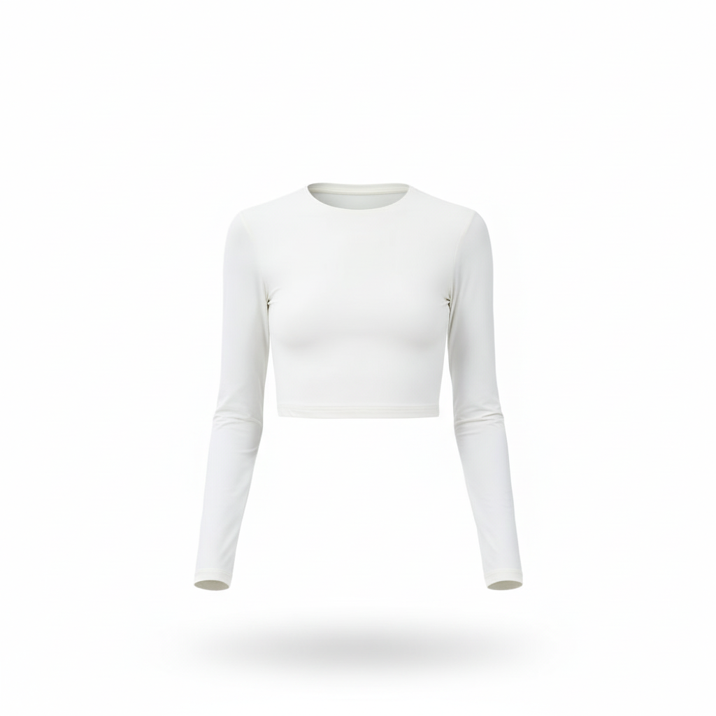 Hazlo protagonista de tus capas: top slim fit de manga larga y corte cropped que define la cintura y eleva cualquier look. Cómodo, minimal y listo para usar diario.