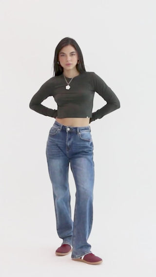 Eleva tu look diario: top slim fit de manga larga y corte cropped que define la cintura sin perder comodidad. Su color suave lo hace fácil de combinar.
