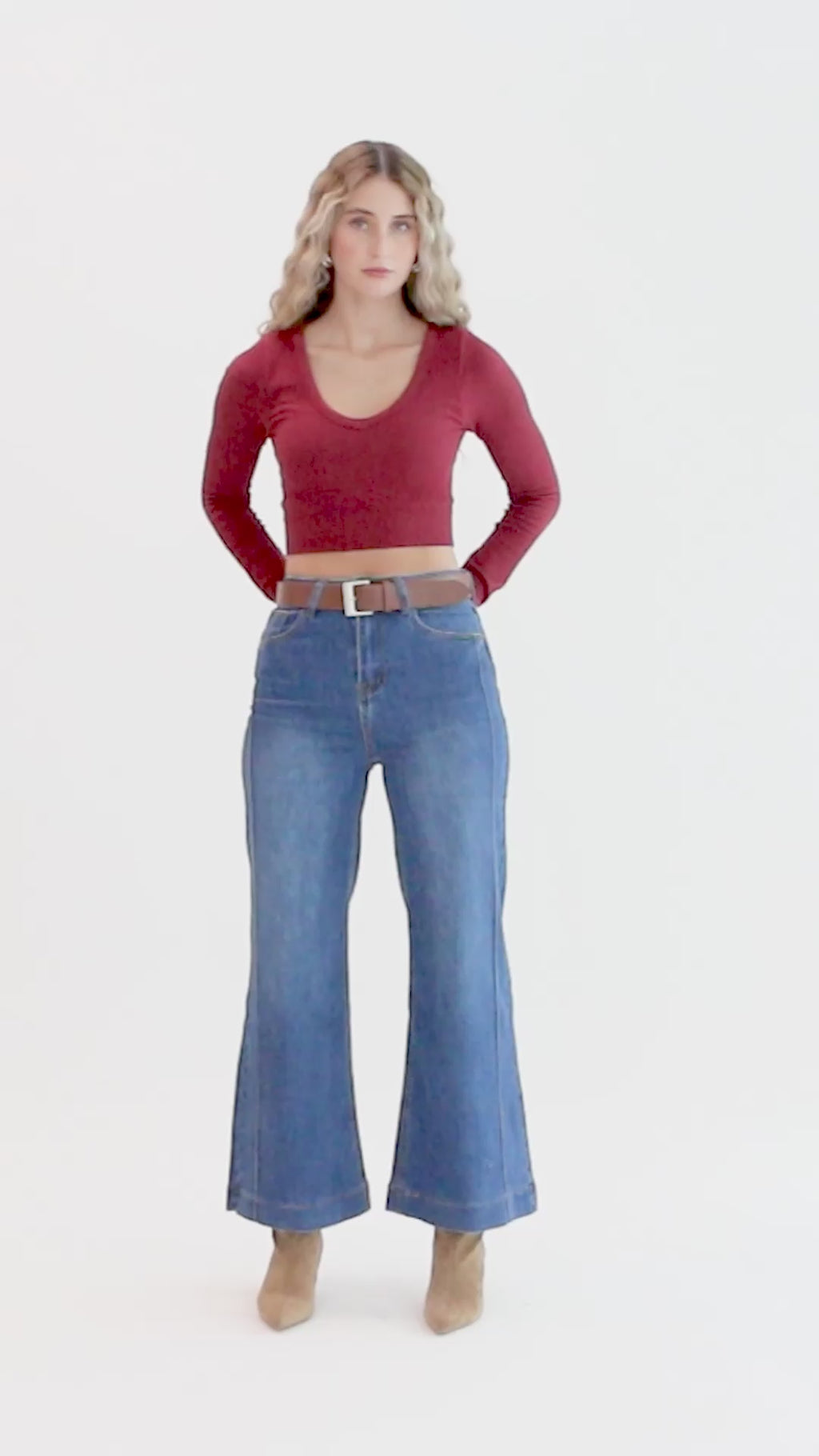 ✨ Second-skin vibes. Crop top slim fit de manga larga con construcción seamless y textura acanalada que se amolda al cuerpo sin marcas. Escote en U que favorece clavículas y cintura definida para un look clean y sexy—dress it up or keep it casual.