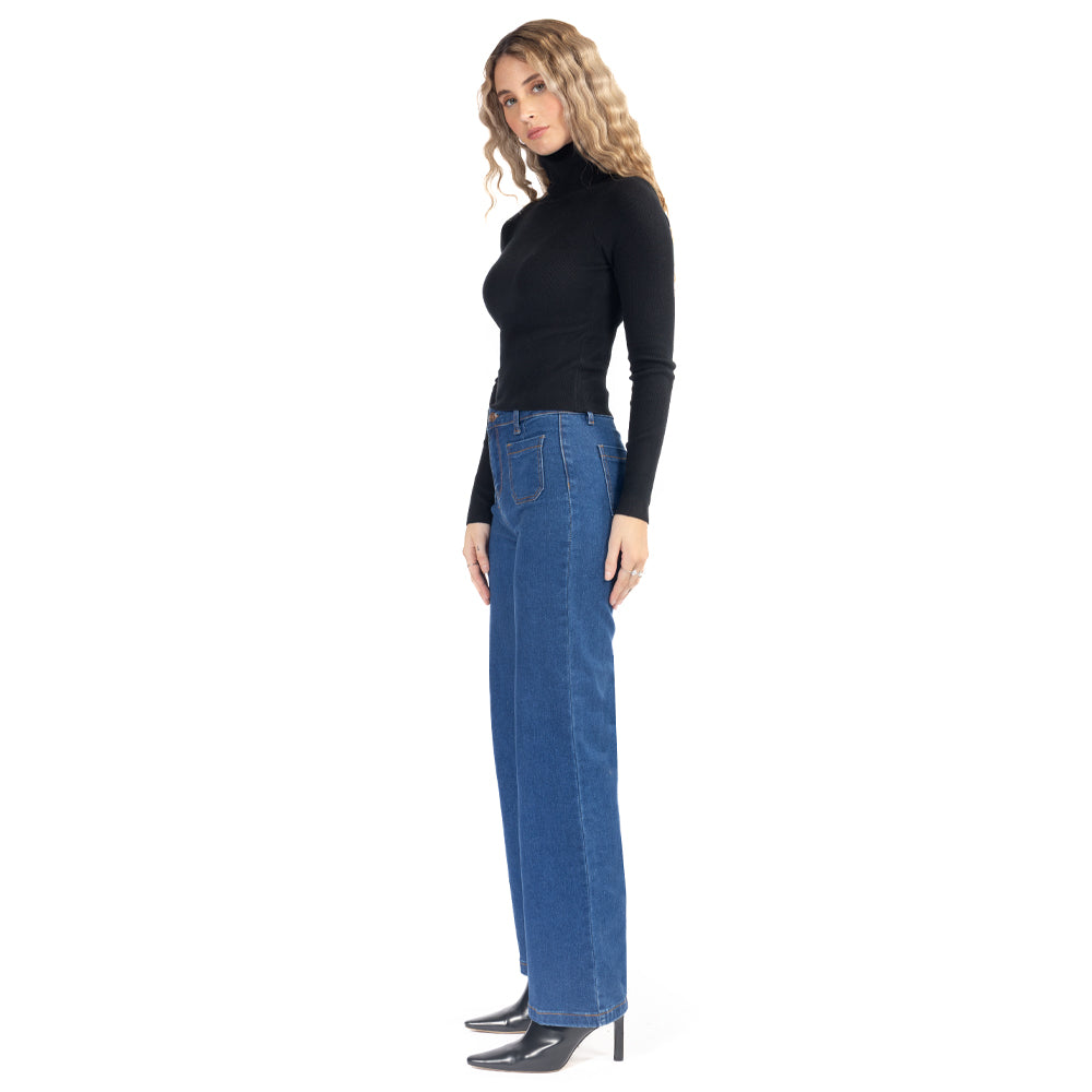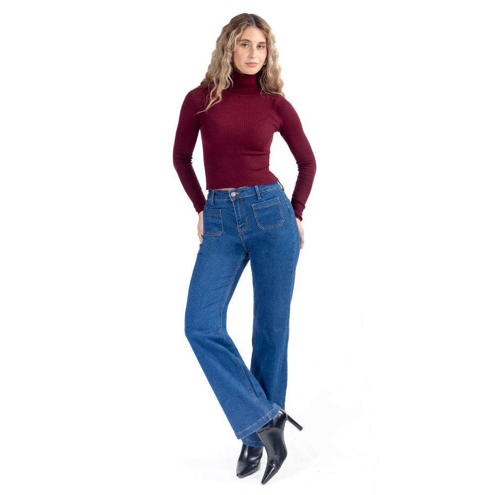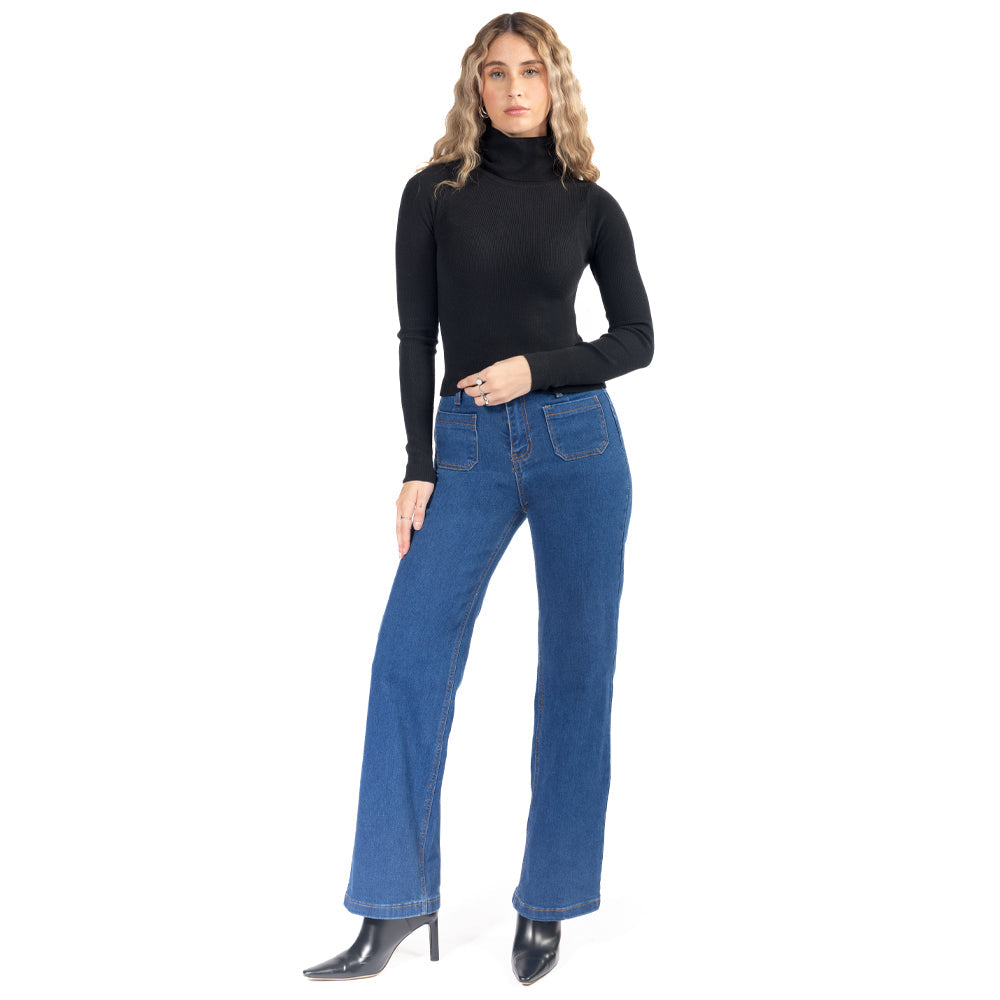 Cuello alto que aporta calidez y un toque elegante, perfecto para accesorios y aretes statement.
