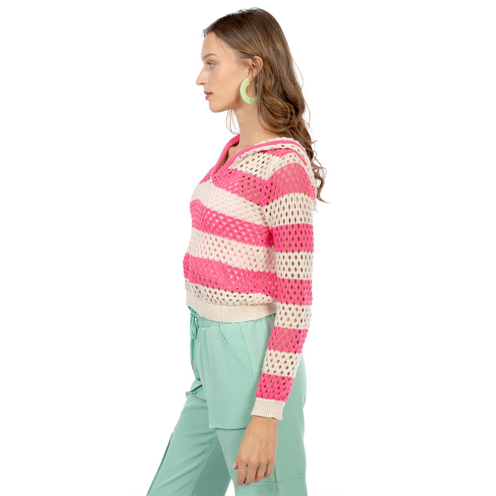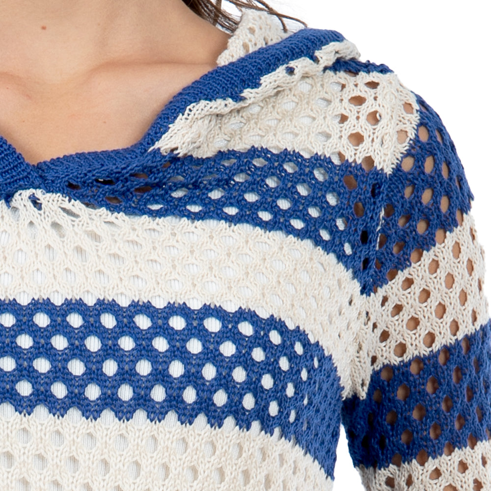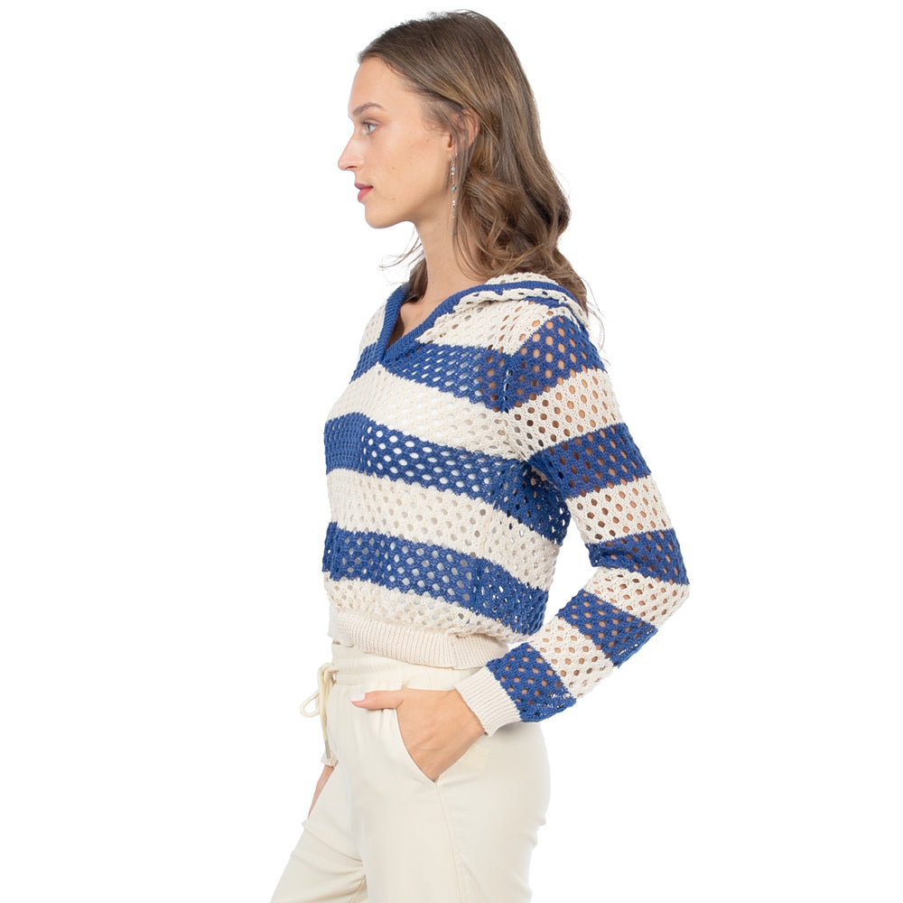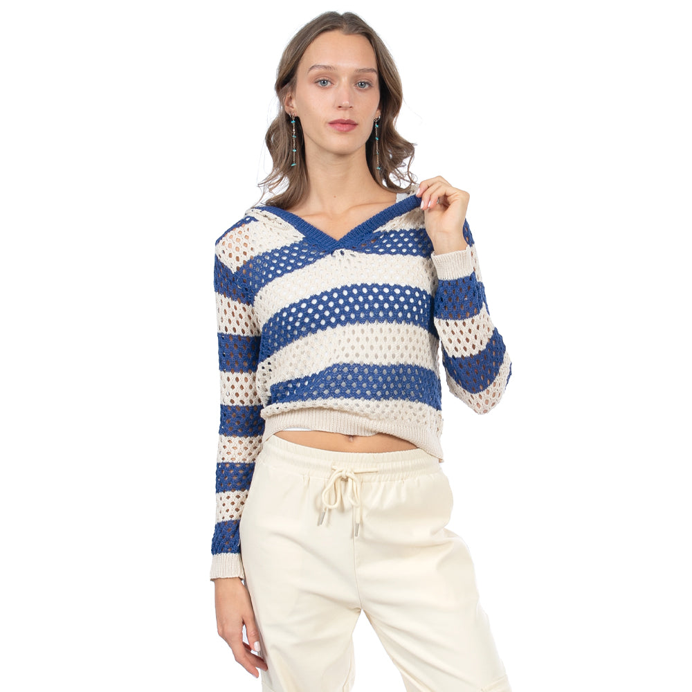 • 🔥 Beneficios: Corte crop que favorece la cintura, capucha con toque sporty-chic, franjas que estilizan y construcción calada perfecta para capas en cualquier temporada.