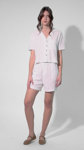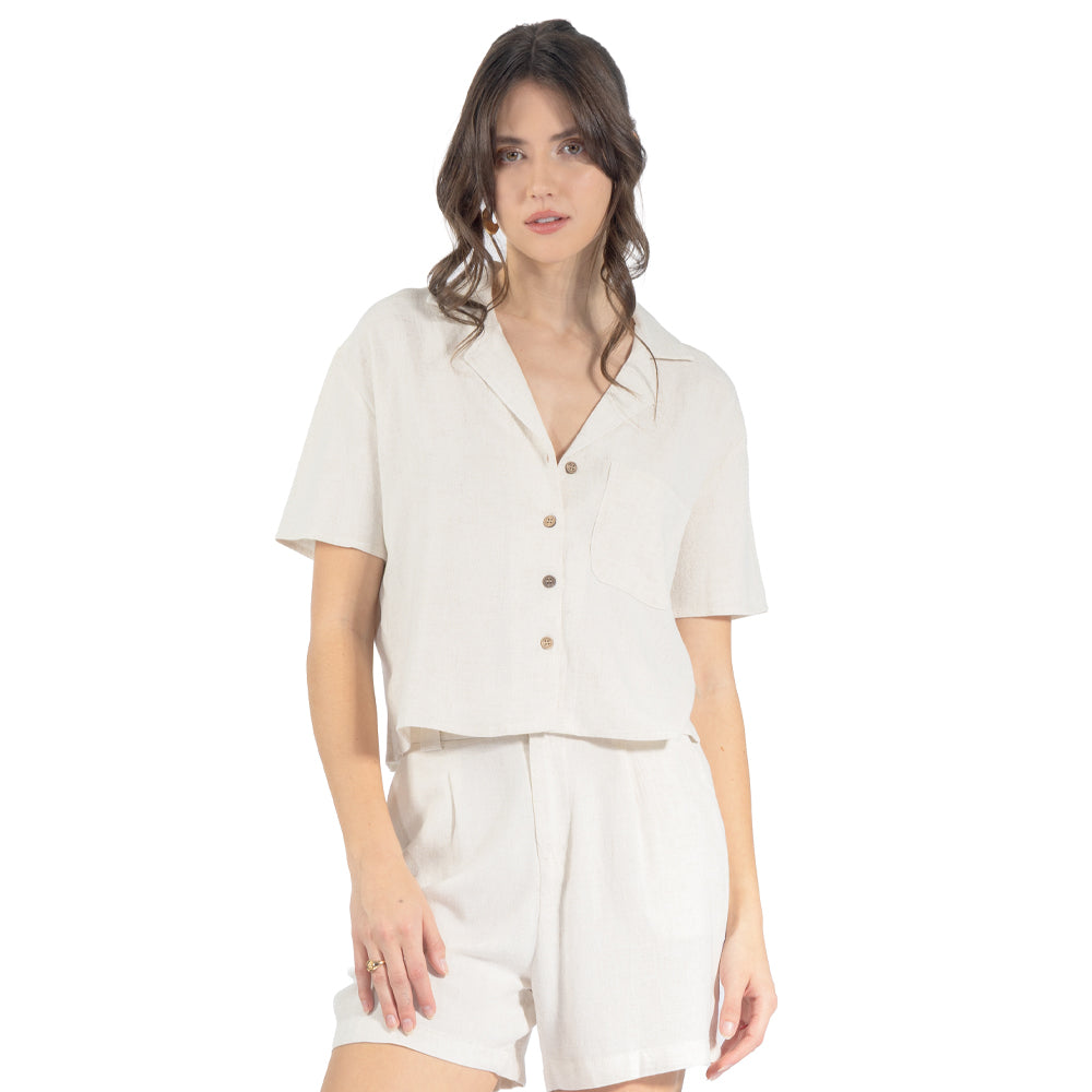 Una blusa de botones que se ve limpia: cuello camisero y frente abotonado para jugar con el escote como tú quieras.